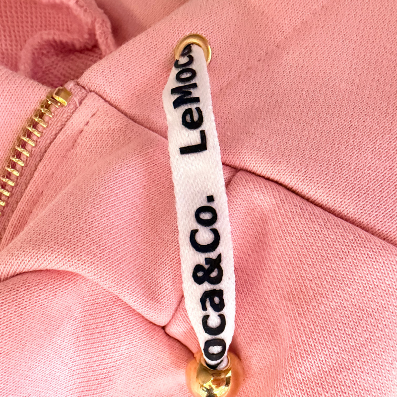 フードの紐にはLeMocaロゴ入り。