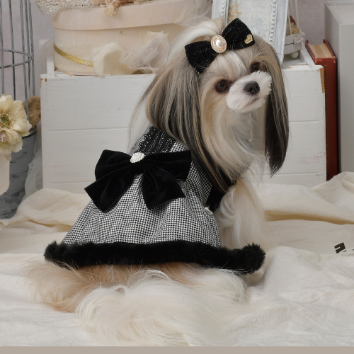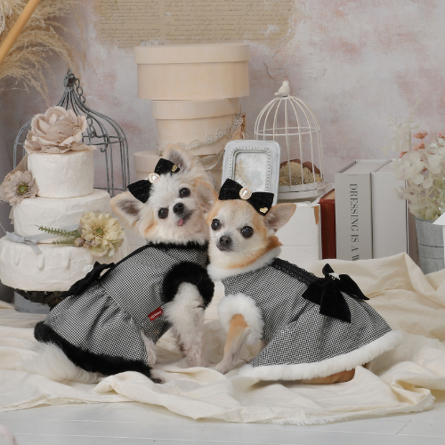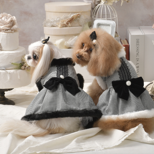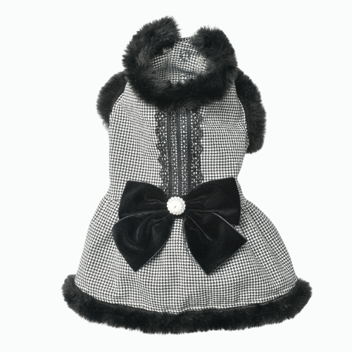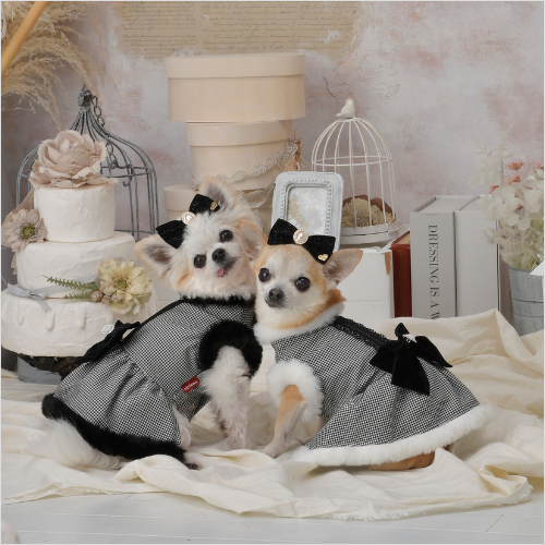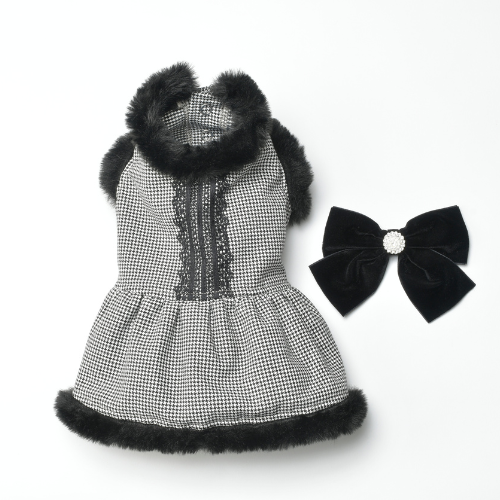 上品な千鳥格子にふわふわファーをあしらった、冬のおしゃれにぴったりのワンピース。