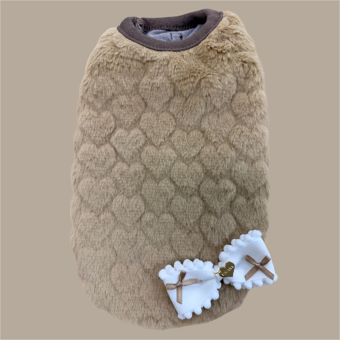 モコモコのハート柄フェイクファー生地で、とびきり可愛く。
