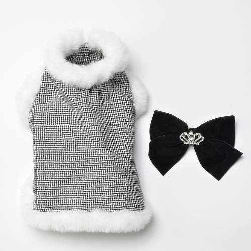 千鳥格子ファーベスト White