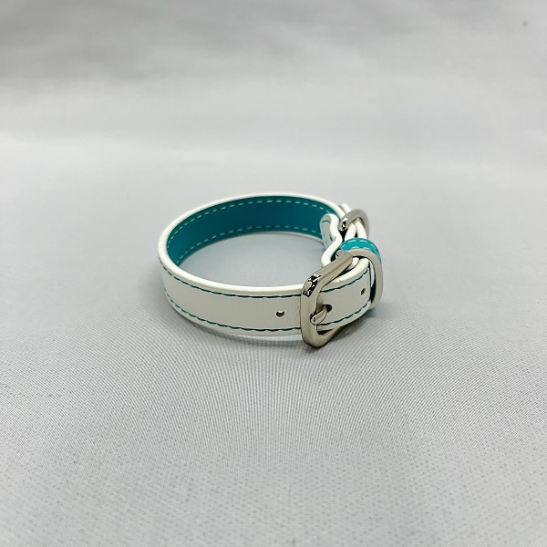 バイカラーがお洒落で上品な印象の首輪です。